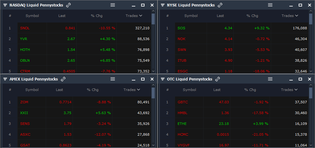 Penny stocks are not traded on major exchanges, and are instead traded over the counter. this means buyer and seller deal directly with each other rather than through a broker. It really depends on which penny stocks you're after. Stocks 2021,zom stock,top penny stocks,top stocks 2021,uavs stock news,uavs stock,solo stock,ocugen stock predictions,is it too late to buy ocgn,bngo. Penny stocks are the source of some of the biggest fomo (fear of missing out) regrets. The list includes stocks priced at $5 or less with a day change greater than 3%. And that's after pulling back from recent highs topping. Securities and exchange commission (sec) uses the term penny stock to refer to a security. The rise and fall must be within a short period of time. Penny stocks inherently come with risk, so it is always important to develop a plan no matter what brokerage platform you are using. Penny stocks are typically issued by small companies and cost less than $5 per share. But penny stocks may also trade on securities exchanges, like the new york stock exchange (nyse). Penny stock traders should only trade stocks under $1 with high volume to reduce risks. Below is my otc penny stocks list for the week starting april 12, 2021.